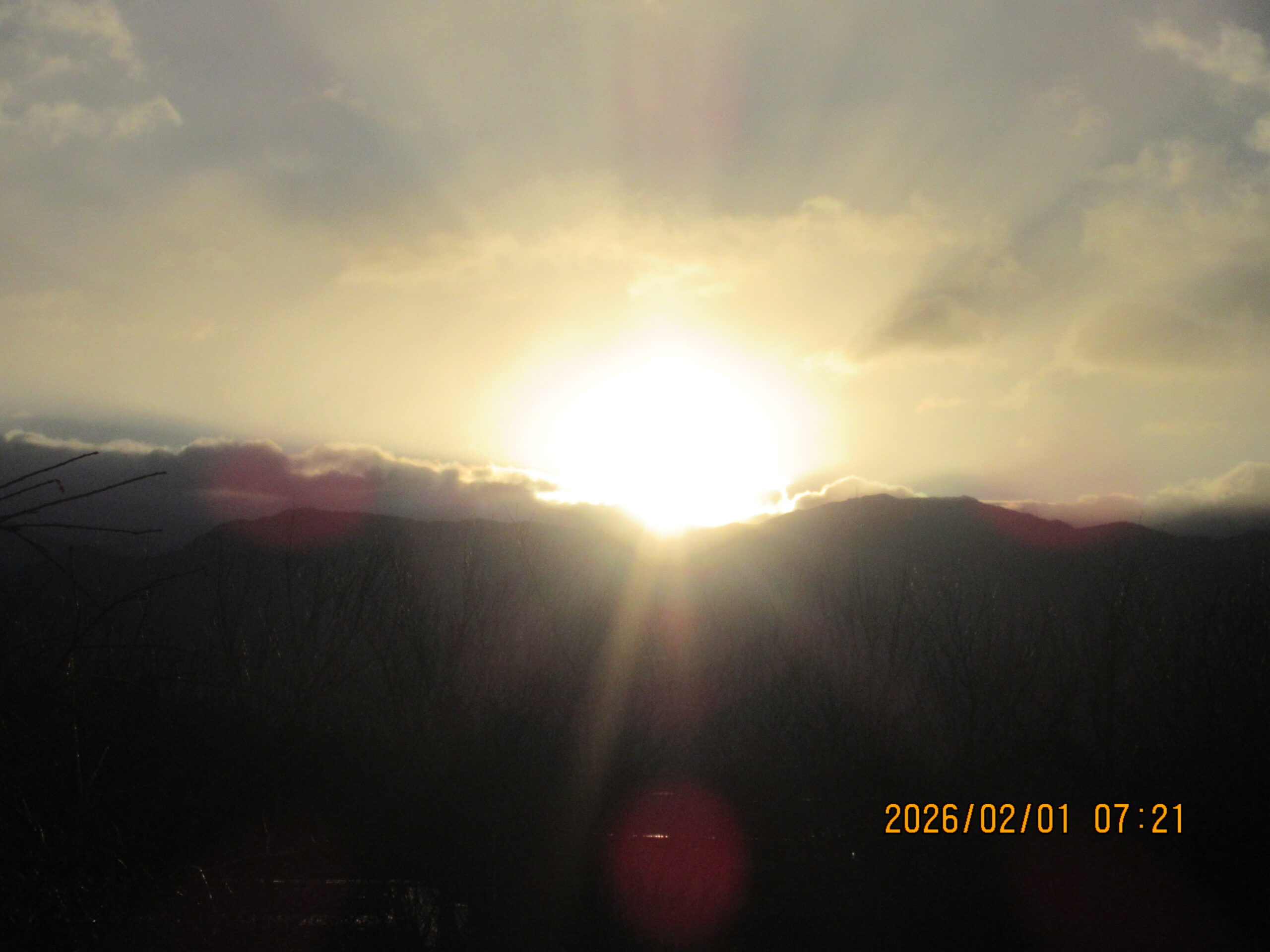 明けましておめでとうございます。今年もよろしくお願いします。朝7時28分、南アルプス稜線からの初日の出。この光のパワーによって生かされる。太陽に感謝だ。
