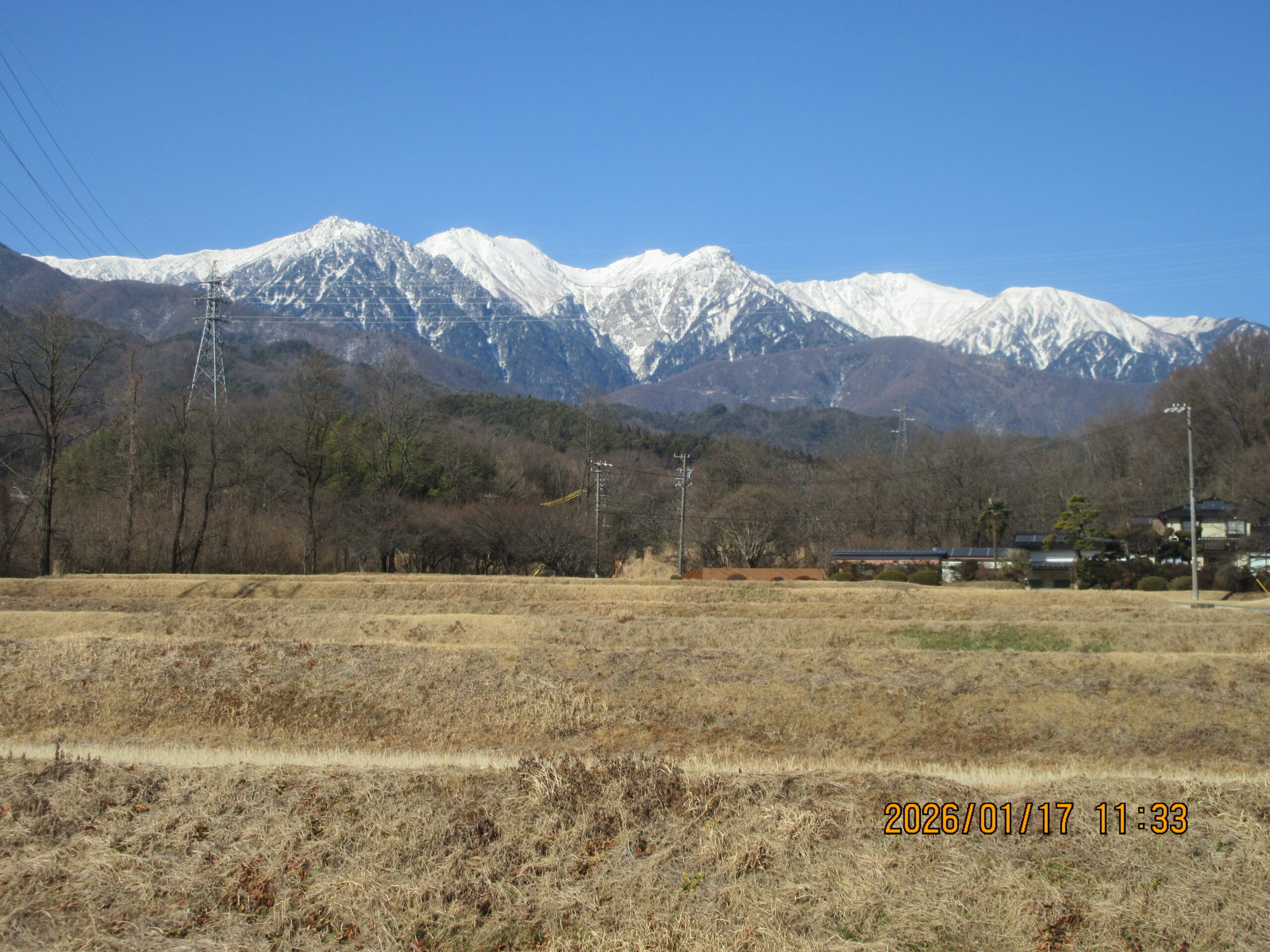 朝日を浴びて輝く11月の中央アルプス